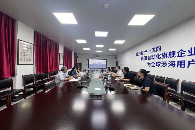 8 月 16 日上午,调研团队前往中船航海科技有限责任公司进行 调研,公司党委副书记、纪委书记韦晓峰介绍了党建特色品牌建设情 况,双方就党建特色品牌建设进行了深度交流。